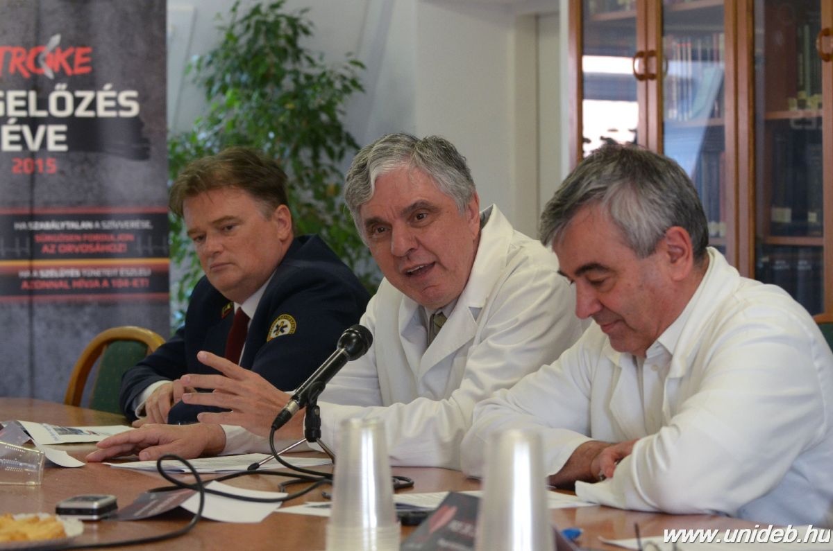 A Klinikai Központban a Neurológiai Klinikán évente mintegy 800 akut agyi infarktust, a Kardiológiai Klinikán pedig 1000-1500 akut szívinfarktust látnak el. Mindkét betegség esetében nagyon fontos, hogy a páciens mielőbb kórházba kerüljön, hiszen a maradandó károsodás csak így kerülhető el, és ekkor jöhet szóba az azonnali katéter terápia. Csiba professzor elmondta: stroke esetén a vénás vérrögoldás aránya Debrecenben kimagasló – 20 százalék -, ami négyszer jobb az országos átlagnál.