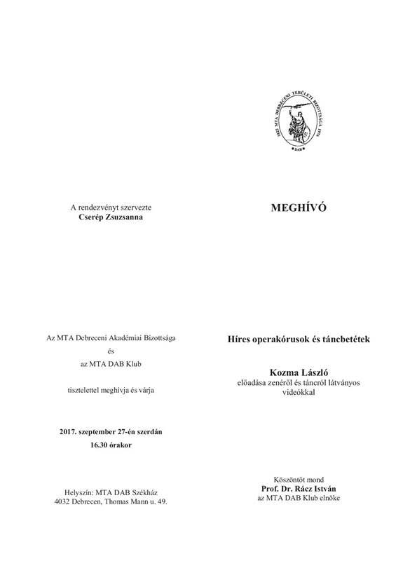 Híres operakórusokról és táncbetétekről a DAB székházban Egyetem szeptember 13, 2017Szabolcs SzilágyiSzóljon hozzá a Híres operakórusokról és táncbetétekről a DAB székházban bejegyzéshez Kozma László tart előadást szeptember 27-én.
