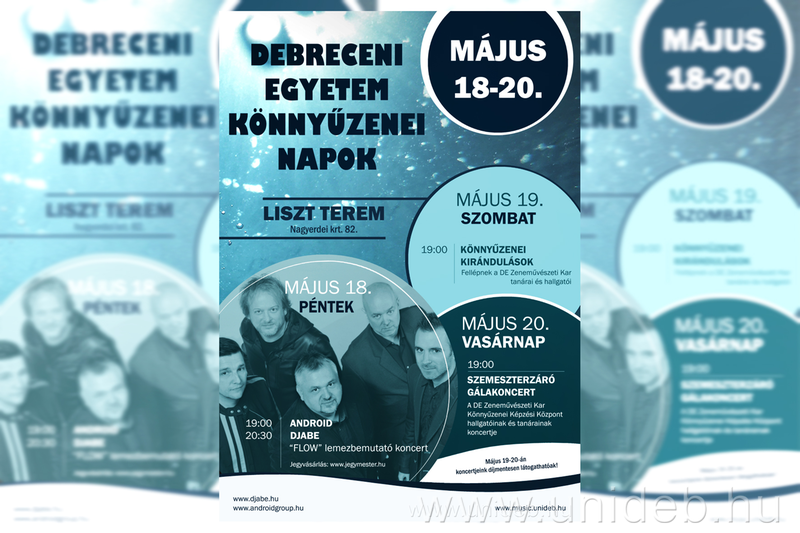 A debreceni Zeneművészeti Kar komolyzenei képzésében részt vevő, könnyűzene iránt is érdeklődő hallgatók is bemutatkoznak a Könnyűzenei Napok keretében, szombaton 19 órától két zenekar ad ízelítőt kedvenc dalaiból a Liszt teremben. A programsorozat utolsó estjén, vasárnap pedig a februárban indult könnyűzenei kurzus résztvevői tartanak szemeszterzáró gálakoncertet.