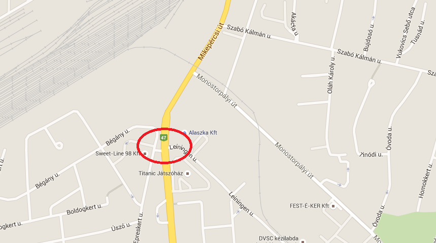 Széna tér irányába: a Homokkerti felüljáró után a Monostorpályi út – Álmos utca – Leiningen utca és tovább az eredeti útvonalon