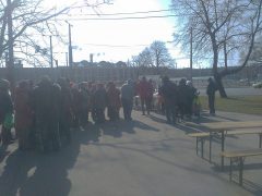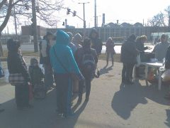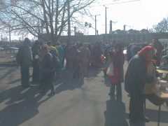 Az ingyenes ételosztáson egy tál meleg ebéddel, forró teával vártunk minden rászorulót. A metsző hideg (mínusz hét fok), a nagy szél ellenére jóval több mint száz embertársunk állt a sorban a töltött káposztáért, a friss kenyérért. A kegyetlen