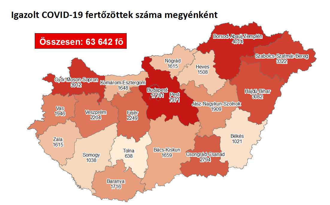 2079 fővel emelkedett a beazonosított koronavírussal fertőzöttek száma és elhunyt 63 krónikus beteg hazánkban. Szabolcs-Szatmár-Bereg megyében a fertőzöttek száma 3322-re emelkedett.