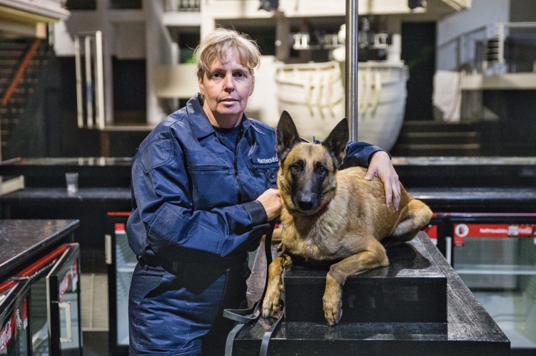 – A zömében keresőkutyákból álló, 13-as létszámú csoport alapvetően a ROKK dunakeszi kutyakiképző bázisán készül a szolgálatra, hogy november végi vizsgájuk után, amennyiben alkalmas minősítést kapnak, csatlakozhassanak szolgálati társaikhoz – mondta Jánosi Veronika főtörzszászlós, a ROKK szakoktatója. – Szükségesnek találtuk, hogy az ebek által ismert közegből kimozduljunk, és életszerű körülmények között is gyakorolhassák majdani szakterületük fortélyait. Ezzel a csoporttal, szintén képzési célzattal, jártunk már az ország több pontján. Voltunk Kiskunfélegyházán egy raktárban, gyakoroltunk hajón és gépjárműtelephelyen is. Fontos, hogy a későbbiekben ne idegenkedjenek semmiféle környezettől, külső ingerektől, behatásoktól, hiszen majd napi munkáik során is sokféle, kiszámíthatatlan területre, helyzetekbe sodorhatja őket az ellátandó feladat. Ózdon egy helyi kolléga csatlakozott hozzánk, így 14 kutyával kezdtük meg a gyakorlást. Először a kedvünkért, vagyis a kutyák minél élethűbb szimulációjának érdekében egy diszkóban.