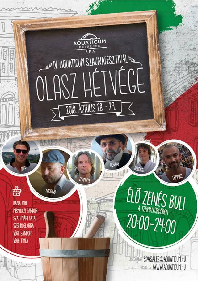 Olaszországból érkezik 6 lelkes és profi szaunamester, hogy a mester szaunában és a gőzkabinban két napig kényeztesse vendégeinket.