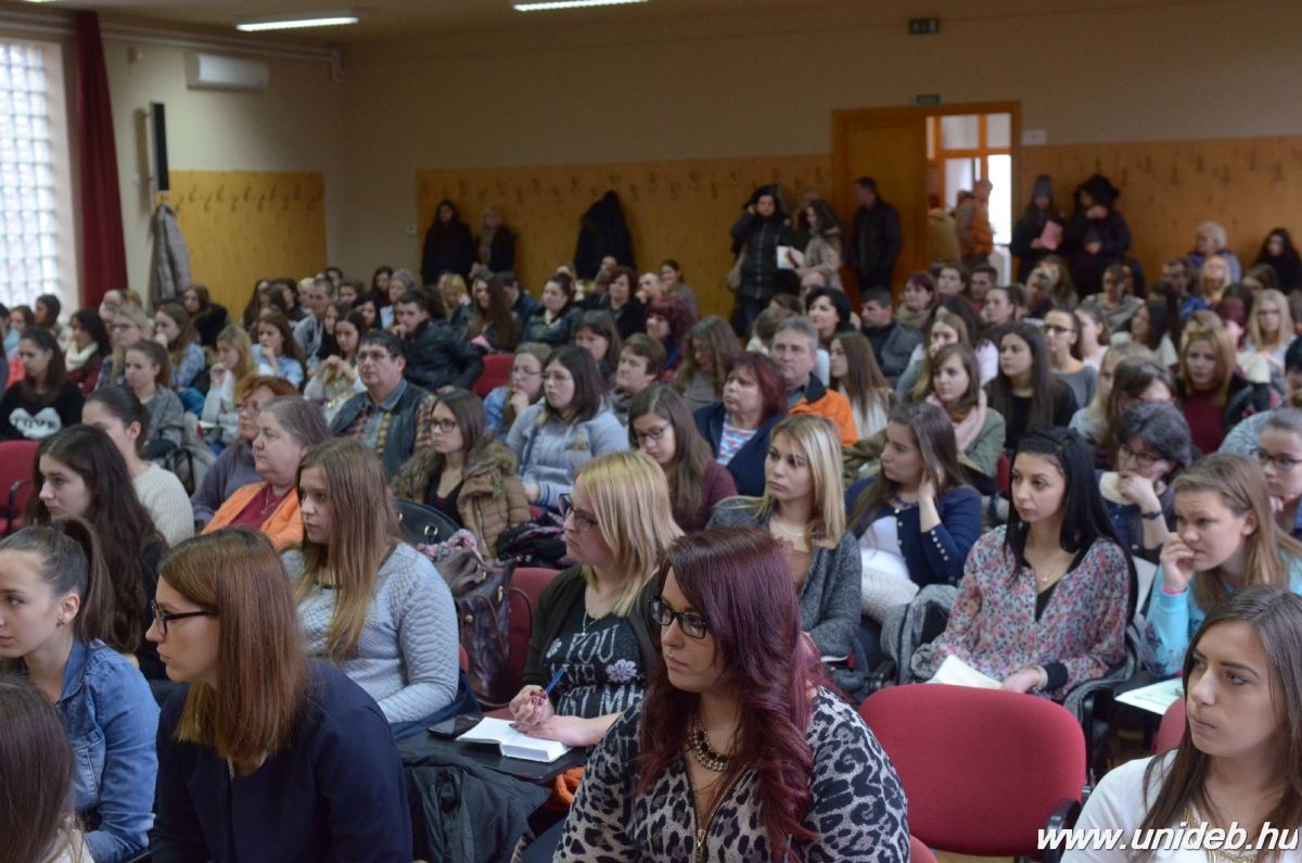 Zsúfolásig megtelelt felvételi előtt álló fiatalokkal – köztük szokatlanul sok ifjú férfival – az intézmény Gyermeknevelési és Felnőttképzési Kara a pénteki nyílt napon. A hajdúböszörményi karon a több évtizedes múltra visszatekintő óvodapedagógus képzés (nemzetiségi szakirányon is) mellett, szociálpedagógus, andragógia, csecsemő- és kisgyermeknevelő, valamint társadalmi tanulmányok alapszakok, illetve emberi erőforrás tanácsadó mesterszak közül választhatnak a jelentkezők.