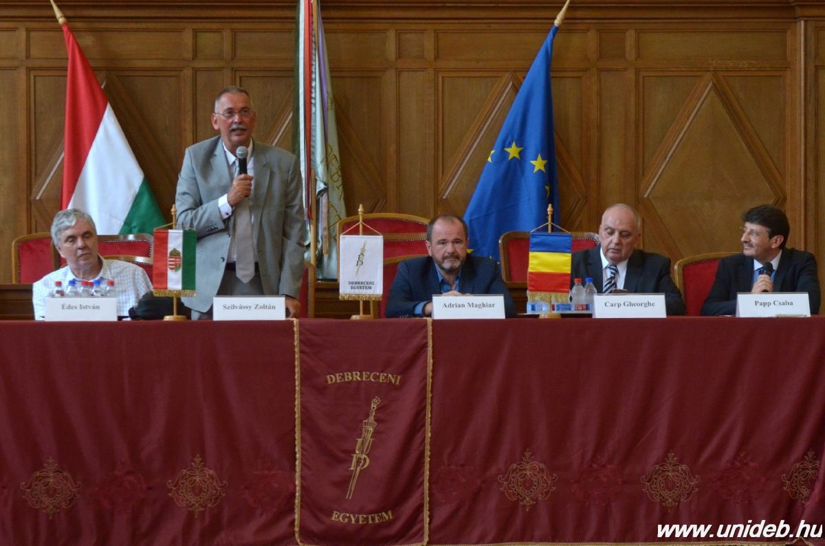 A rektor hozzátette: a kapcsolat túlmutat két egyetem együttműködésén, hiszen a kutatásba és az innovációba az intézmények köré szerveződő iparvállalatokat és mindkét város vezetését is be kell vonni, a távlati cél pedig, hogy létrejöjjön a Kárpát-medencében egy jól működő Debrecen-Nagyvárad innovációs tengely. A rektor konkrét példával illusztrálta: Romániában jó gyógyszer-alapanyag gyárak, Magyarországon pedig jól működő gyógyszeripari készterméket előállító cégek vannak, erre alapozva akár közös vállalatokat is létre lehet hozni. Szilvássy Zoltán az együttműködés fő céljának nevezte, hogy olyan közös projekteket kell megfogalmazni, amelyek 2020 után uniós források nélkül is működőképesek lesznek a piacon.
