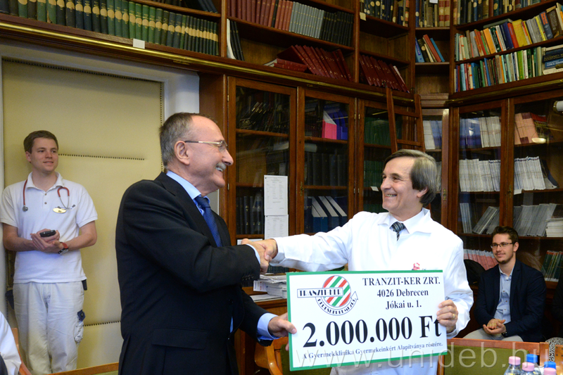Már hetedik éve támogatja a Debreceni Egyetem Gyermekgyógyászati Intézetét a Tranzit-Ker Kereskedelmi Zrt. A cég idei, négymillió forintos adományát a Hallgatói Önkormányzat kiegészíti további 1,2 millió forinttal.