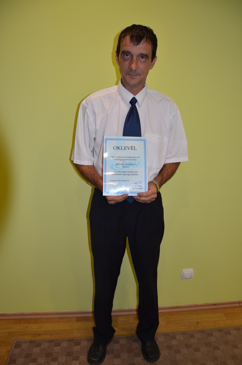 Munkavégzés közben tett életmentő segítségnyújtásért elismerésben részesítették Szilágyi Sándor járművezetőt.