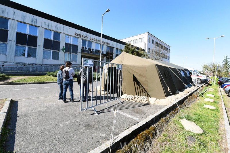 A Kenézy Gyula Egyetemi Kórház traumatológiai bejáratnál felállított pre-triázs sátorban minden betegnek kötelező az előszűrő ponton keresztül haladni, orrot és szájat fedő maszkot viselni – teszik hozzá.