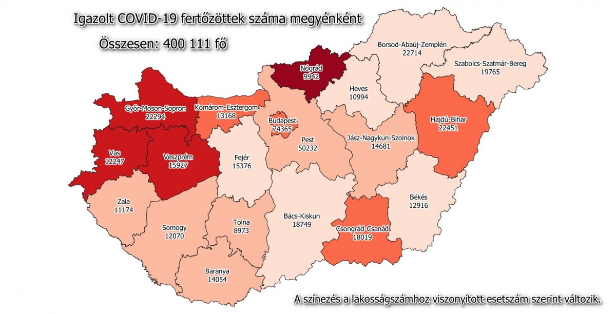 2995 újabb magyar állampolgárnál mutatták ki az új koronavírus-fertőzést, ezzel 400 111 főre nőtt a hazánkban beazonosított fertőzöttek száma. Elhunyt 107 többségében idős, krónikus beteg, így az elhunytak száma 14 252 főre emelkedett.