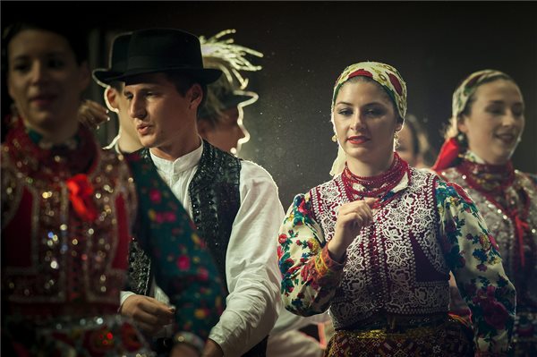 A Debreceni Népi Együttes tagjai táncolnak Wass Albert Tizenhárom almafa című regényéből táncszínpadra adaptált előadásuk ősbemutatóján a debreceni Kölcsey Központban 2015. szeptember 26-án. MTI Fotó: Czeglédi Zsolt