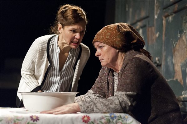 Varga Klári (b) Szabados Magda és Kubik Anna (j) Emerenc szerepében Szabó Magda Az ajtó című színművének próbáján a debreceni Csokonai Nemzeti Színház Víg Kamaraszínházában 2016. január 14-én. A darabot Naszlady Éva rendezésében január 15-én mutatják be. MTI Fotó: Czeglédi Zsolt