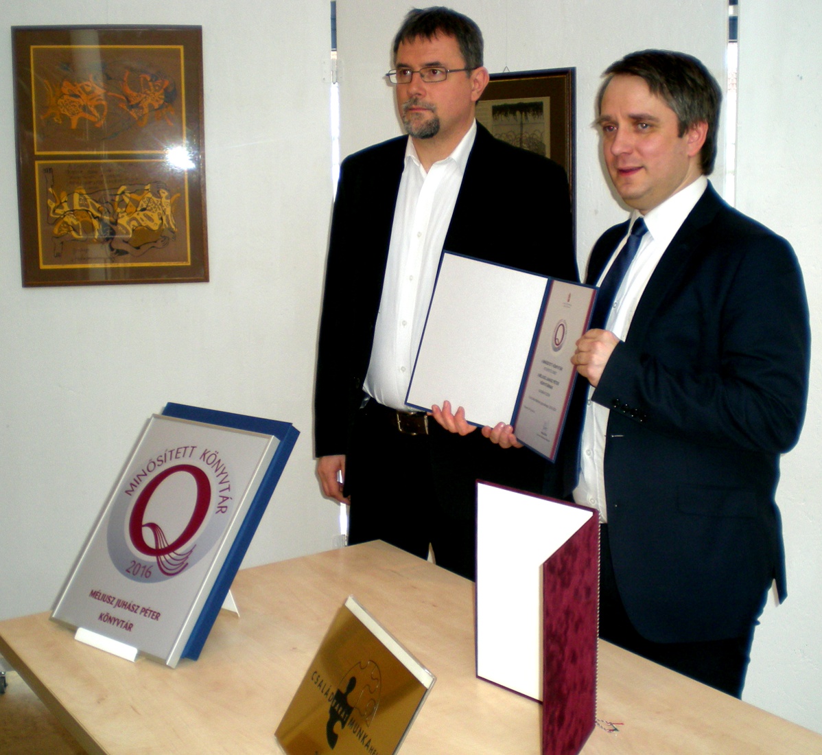 A Minősített Könyvtár cím elnyerése azt jelenti, hogy a könyvtár kiválóan tevékenykedik. Még 2015-ben nyerte el a könyvtár a Családbarát Munkahely címet. Komolay Szabolcs elmondta: a kormánynak nagyon fontos elvárása, hogy az országban olyan munkahelyek működjenek, ahol a dolgozók össze tudják hangolni munkahelyi létüket és a magánéletüket. Harmonikus magánélet nélkül ugyanis nincs megfelelő munkahelyi teljesítmény, s akkor hatékony a munkavégzés, ha a dolgozók jól érzik magukat a munkahelyükön, s a munkáltatók respektálják azt, hogy nekik családi kötelezettségeik is vannak.