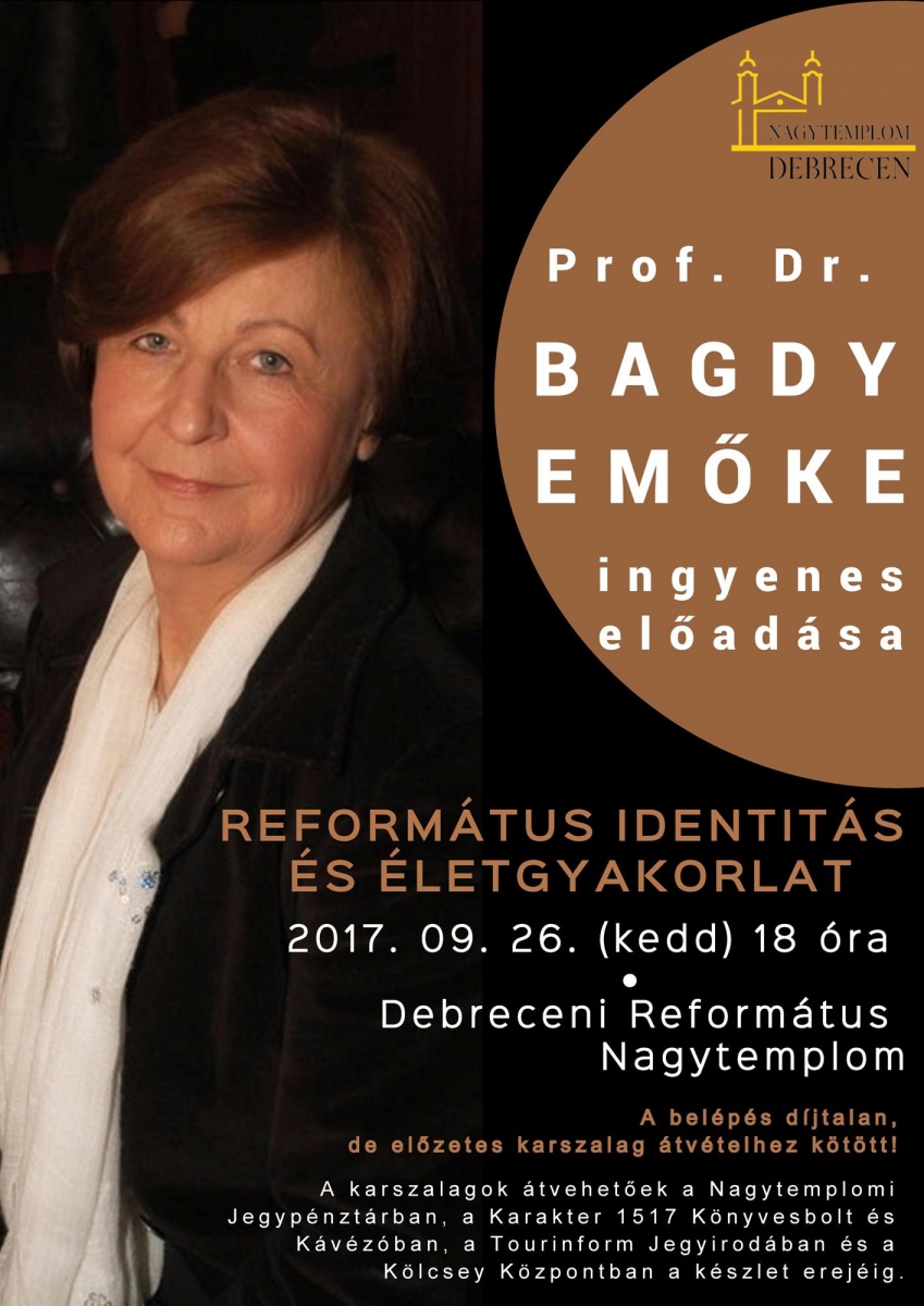 2017. szeptember 26-án 18 órától életében először tart előadást a Debreceni Református Nagytemplomban Református identitás és életgyakorlat címmel. A belépés díjtalan, de előzetes karszalag átvételhez kötött, melyek a készlet erejéig beszerezhetőek a Nagytemplom Jegypénztárában, a Karakter 1517 Könyvesbolt és Kávézóban, a Tourinform Jegyirodában és a Kölcsey Központban. Az előadás után könyvvásárlással egybekötött dedikálásra is lesz lehetőségük az érdeklődőknek.