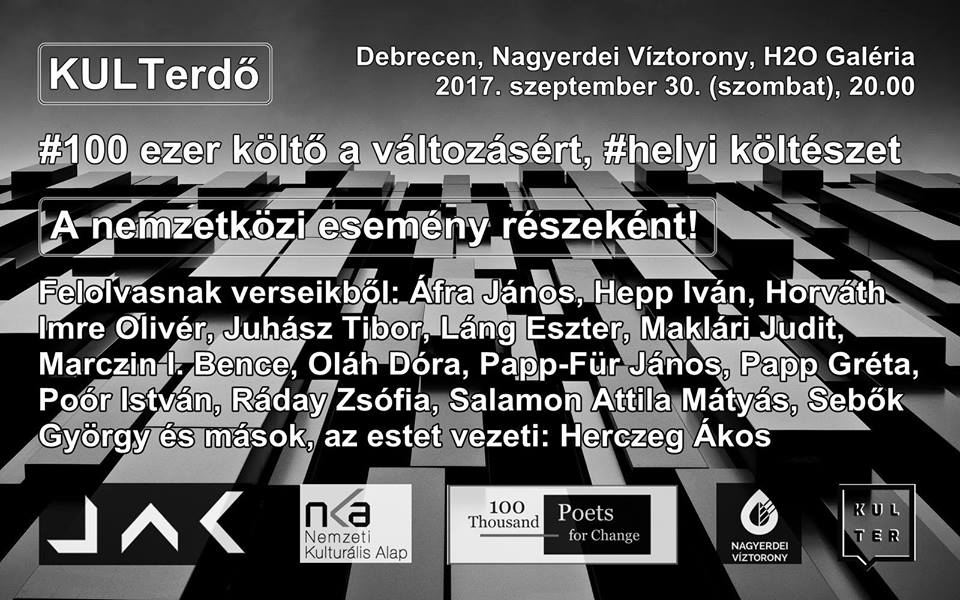 Debrecenben felolvasnak: Áfra János, Géczi János, Hepp Iván, Horváth Imre Olivér, Juhász Márió, Juhász Tibor, Láng Eszter, Maklári Judit, Marczin I. Bence, Oláh Dóra, Papp-Für János, Papp Gréta, Poór István, Ráday Zsófia, Salamon Attila Mátyás, Sebők György és mások.