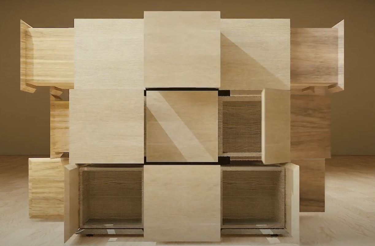 Kuma Kengo, a tokiói olimpiai stadion és más híres japán és külföldi épületek tervezője egy forgatható és mozgatható, Rubik-kocka alakú bútort készített a kiállításra. A Youtube-csatornáján csaknem kétmillió feliratkozó által követett origamiművész, Nakasima Dzsó pedig különleges, mágneses origami Rubik-kockát hozott létre.