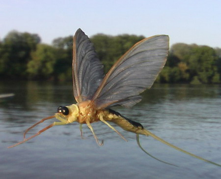 A kikelő szárnyas egyedek a víz felszíne közelében megkezdik rajzásukat. Néhány méter magasságú kavargó tömegben a hímek megkeresik a párjukat, a levegőben párosodnak. A párzás után a hím rövidesen elpusztul, a nőstény a vízbe rakja a mintegy hétezer petéjét.