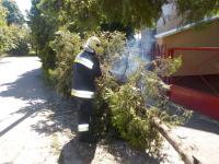 Nagyméretű kidőlt tuja eltávolításához kérték a helyi hivatásos tűzoltók eltávolítását Hajdúszoboszlón, a Fecske zugban.