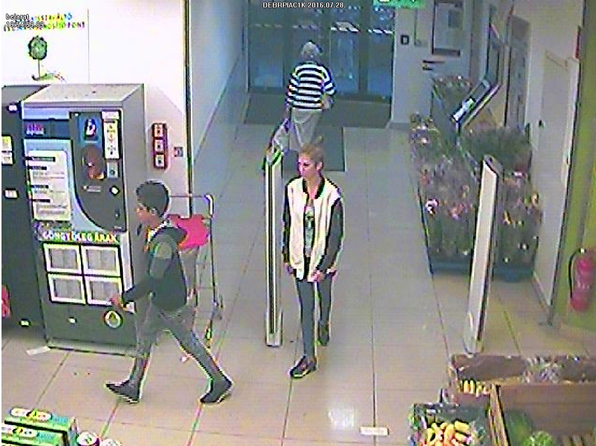 Egy ismeretlen fiatal nő és fiú 2016. július 29-én 19 óra 40 perc körül egy Debrecen, Piac utcai áruházban a polcokról levett három hátitáskát majd azokat megtöltötték csokoládéval és fizetés nélkül távoztak az üzletből.