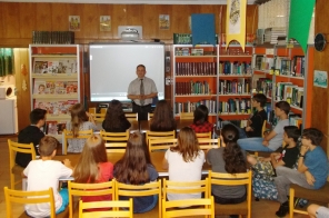 Egy gyermekkönyvtárban tartott előadást a Hajdú-Bihar Megyei Rendőr-főkapitányság bűnmegelőzési munkatársa.
