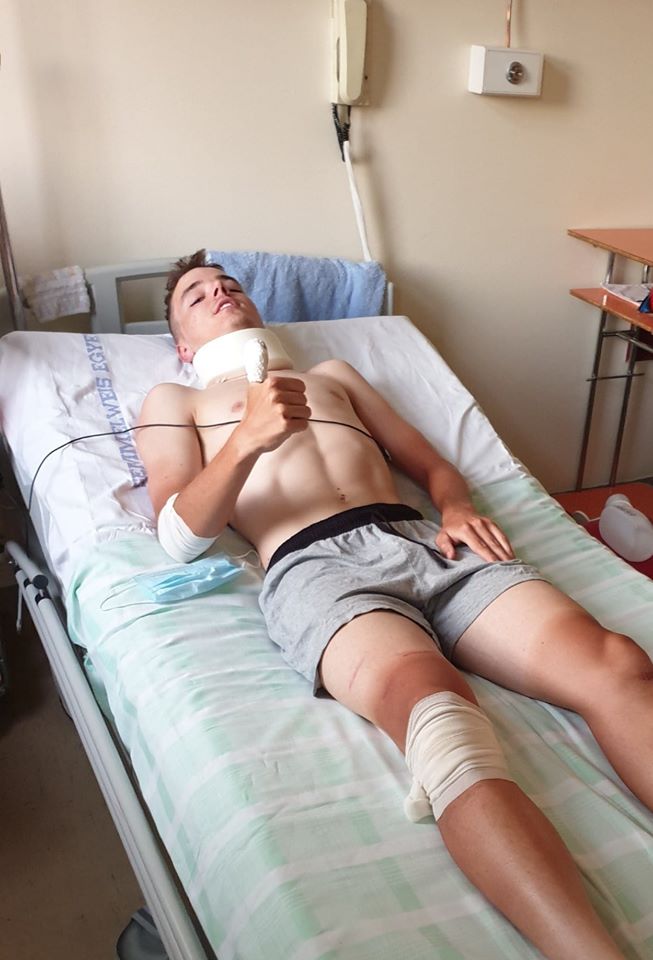 A 20 éves sportoló Facebook-oldalán számolt be arról szerda este, hogy felkészülés közben hirtelen elé hajtott egy kisbusz, esélye sem volt a lassításra, így “beleszállt”. Hozzátette, a hibázó sofőr egyből mindent megtett, hogy a lehető leggyorsabban ellássák.