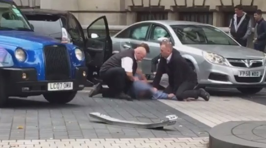 A Toyota vezetőjét járókelők a földre teperték, majd átadták a környéket pillanatok alatt ellepő fegyveres rendőri egységeknek.
