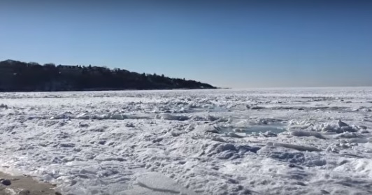 A Massachusetts állambeli North Falmouth beachnél készítették a felvételeket, melyeken az látszik, hogy az Atlanti-óceán parthoz közeli részét szilárd jégtakaró borítja. A Niagara-vízesés már korábban befagyott, de a tenger felszínén – a jóval magasabb sótartalma miatt – csak később képződik szilárd jég.