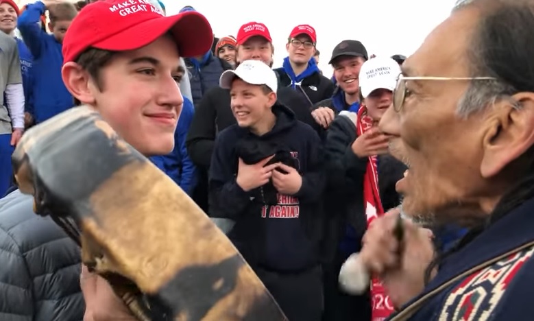 Őslakos indiánok felvonulását zavarták meg egy katolikus középiskola diákjai Washingtonban, akik egy abortusz-ellenes tüntetésről vetődtek oda. Körbevették, kifigurázták őket, majd egyikük gúnymosollyal az arcán elállta a menet útját.