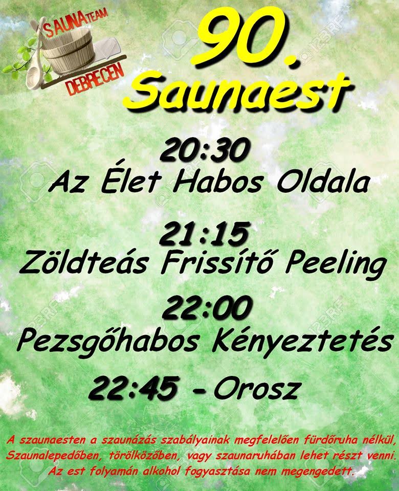 Szokás szerint 20 órától lehet érkezni, és 20:30-kor már kezdjük is az első felöntést. Ezt 21:15-kor egy zöldteás bőrradírozással folytatjuk, majd 22:00-kor egy fantasztikus pezsgős bőrápolással zárjuk.
